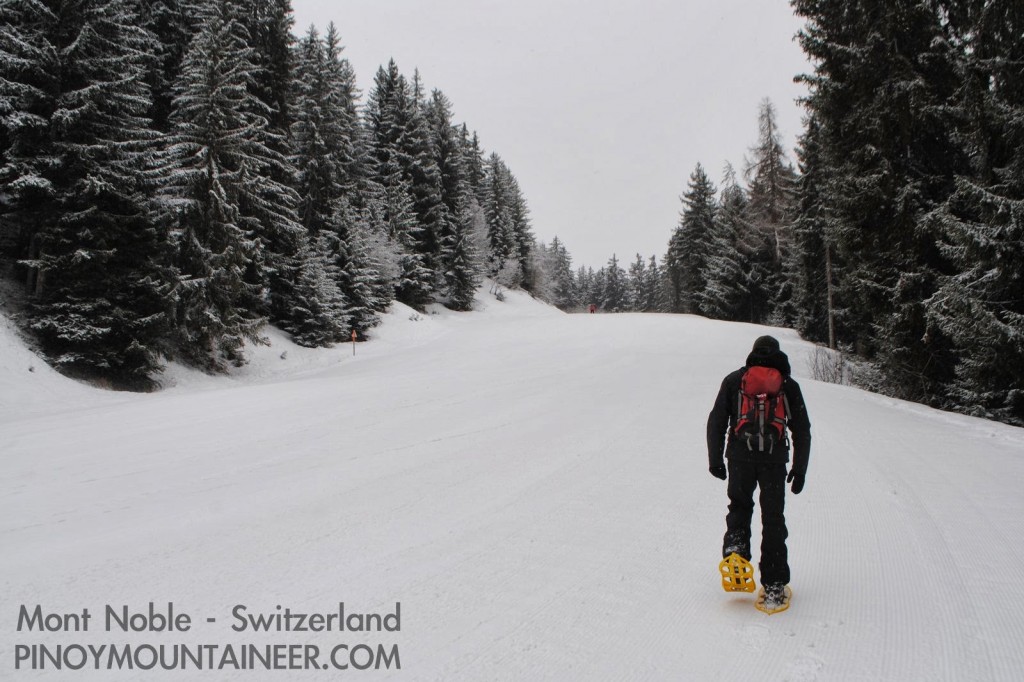 MARTIGNY, SWITZERLAND – After the nice loop hike yesterday from Gueroz to Charavex (see Hiking matters #392), today Filipino Everest climber Leo Oracion took me to the Commune de Mont-Noble in Valais to climb Mont Noble (2673m), a mountain in the Swiss Pennine Alps. Famous for skiing, it is also a popular hike, and in this time of the year, one that is eligible for snowshoeing. Classified as WT3, a “challenging snowshoe hike” by the Swiss Alpine Club, I knew that it would make for a very interesting day.